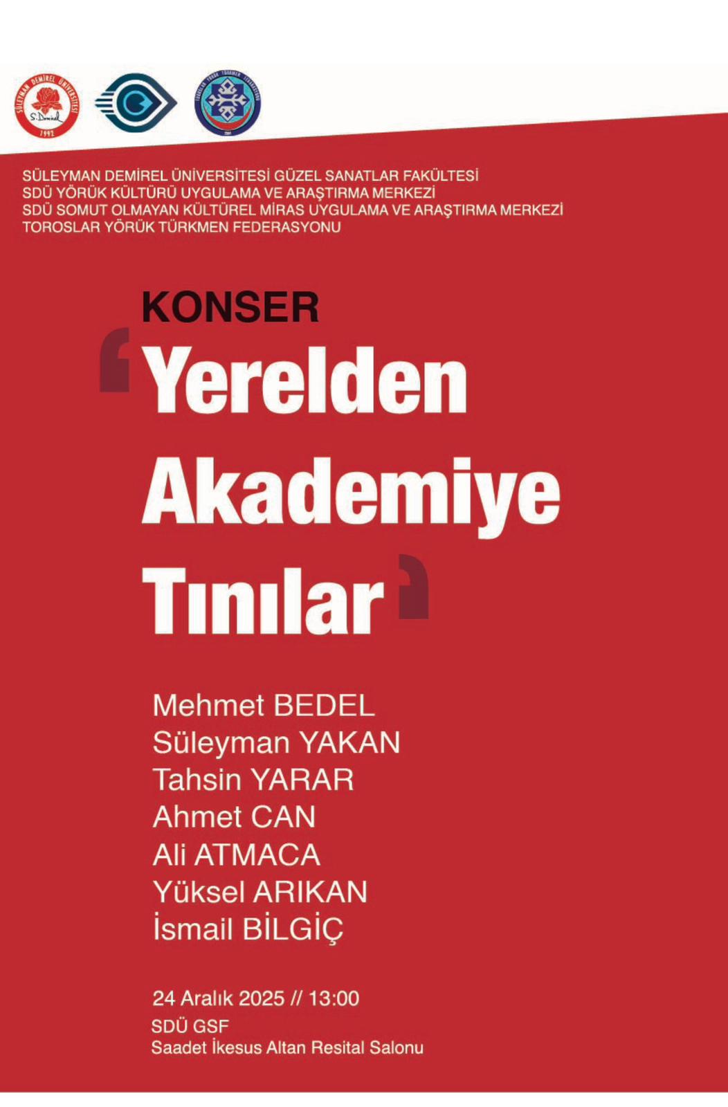 SDÜ Güzel Sanatlar Fakültesi (GSF), Somut Olmayan Kültürel Miras Uygulama ve Araştırma Merkezi (SOKÜM), Yörük Kültürü Uygulama ve Araştırma Merkezi (YORKAM), Toroslar Yörük Türkmen Federasyonu iş birliği ile önemli bir söyleşi etkinliği ve konser düzenlendi.